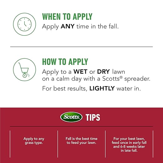 - Apply this grass fertilizer to a wet or dry lawn in the fall