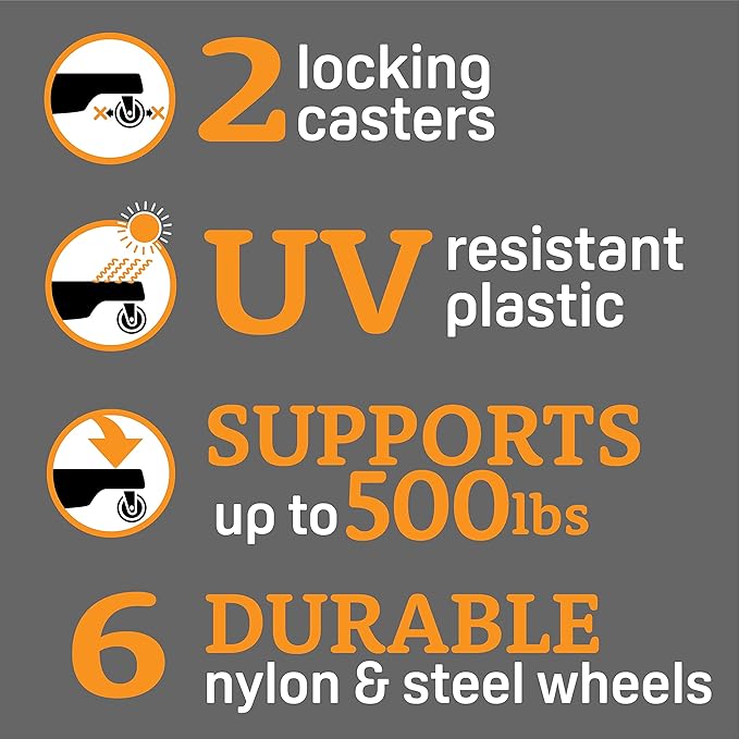 - DURABLE SMOOTH ROLLING WHEELS – Features high quality nylon and steel wheels for smooth rolling and one locking caster to lock the caddie in place.