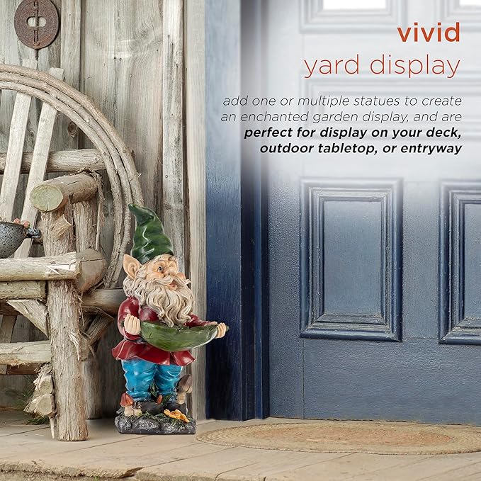 - GARDEN STATUE: Lawn figurine featuring a helpful garden gnome ready to assist you with feeding the birds as he holds a leaf bowl, will bring fun and a warm welcome to your front yard or garden