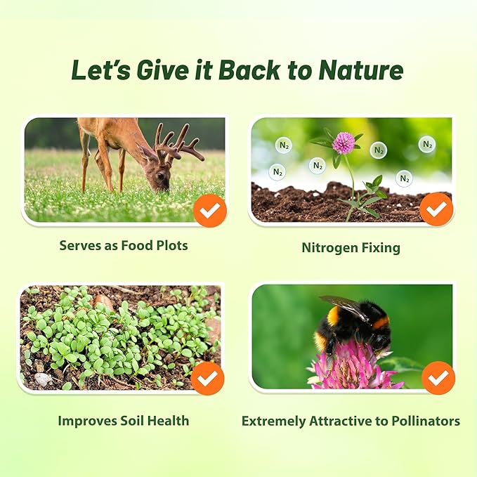 - ATTRACTS POLLINATORS & HIGH YIELD: Extremely attractive to bees and other pollinators, our flowering red clovers supports a healthy ecosystem. It often yields more seed than crimson clover, white clover, mini clover & other clovers, with a longer growing season ensuring consistent and reliable forage for livestock. Ideal for wildflower gardens and attracting deer, rabbits, and other wild life.