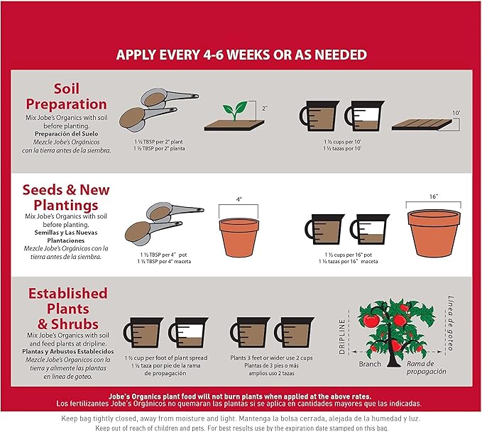 - Application is simple and should be done every 4-6 weeks or as needed during the growing season