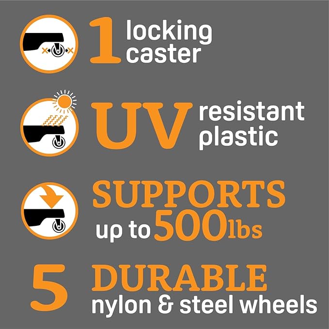 - DURABLE SMOOTH ROLLING WHEELS – Features high quality nylon and steel wheels for smooth rolling and one locking caster to lock the caddie in place.