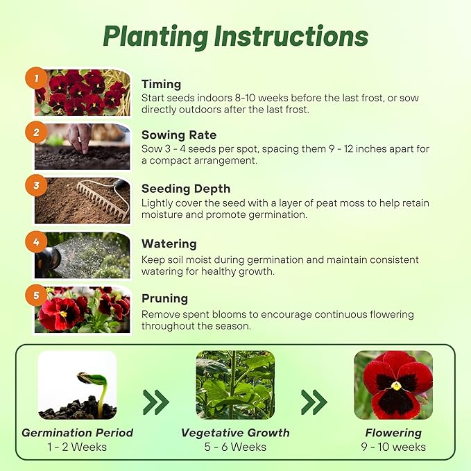 - Sowing Rate: 3 - 4 seeds per plant. For spring blooms, it is best to start the seed indoors in the late winter. Press the seed into the soil and lightly cover with peat moss. Darkness aids germination so it is best to shade the starter tray. With a temperature of 65 - 70F, germination normally occurs within 21 days.