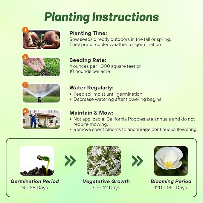 Outsidepride 1 lb. Annual Eschscholzia California Poppy White Linen Wild Flower Seeds