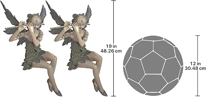 Design Toscano CL95276 Fairy of The West Wind Sitting Garden Statue, 19 Inch, Set of Two, Two Tone Stone