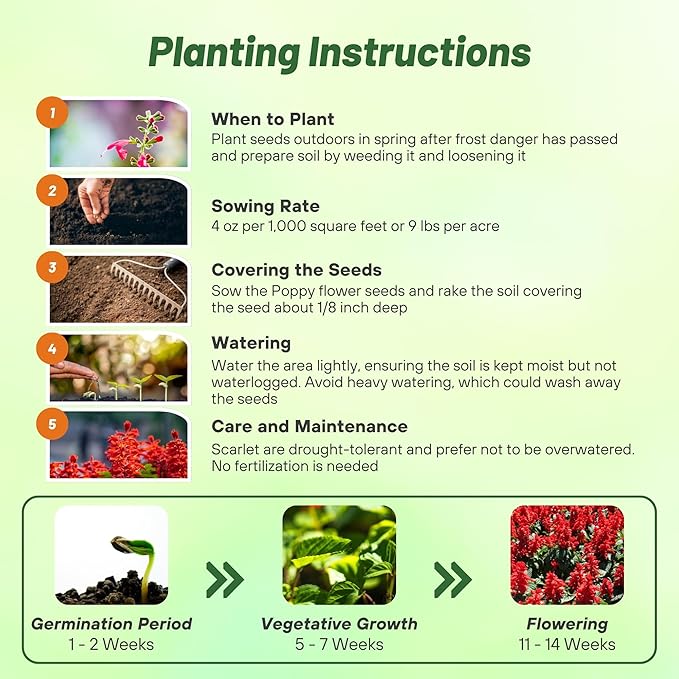 - FLEXIBLE PLANTING OPTIONS: Start our red sage seeds indoors 8-10 weeks before frost or sow them directly outdoors. This flexibility makes it easy for gardeners of all levels to cultivate wildflowers successfully, whether using a wildflower mix or individual flower seed packets.