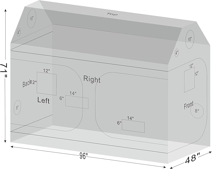 Grow Tent Plant Tent 98"x48"x72" Roof Cube Grow Tent for Hydroponics Indoor Plant Growing