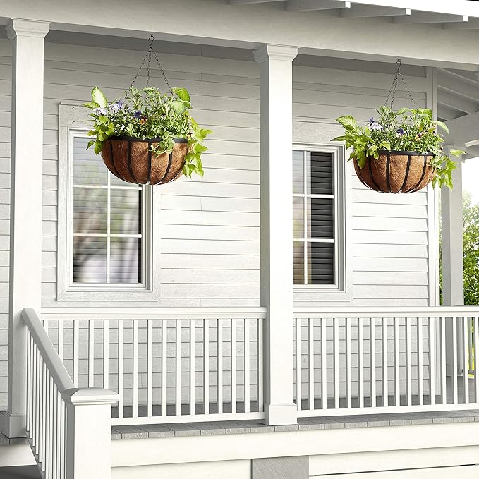 Arcadia Garden Products Coconut 1593 Solstice Round Hanging Basket Planter, 20-Inch, Black