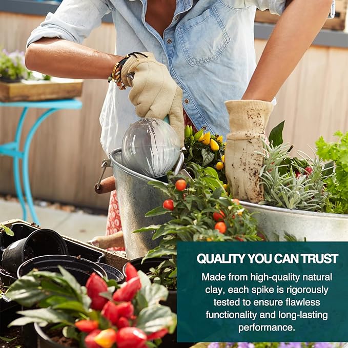 - OPTIMAL PLANT HEALTH - These self-watering devices distribute consistent moisture, promoting healthy growth. Whether used as self-watering stakes for indoor plants or plant watering bulbs, they prevent dryness and foster vibrant, thriving plants.