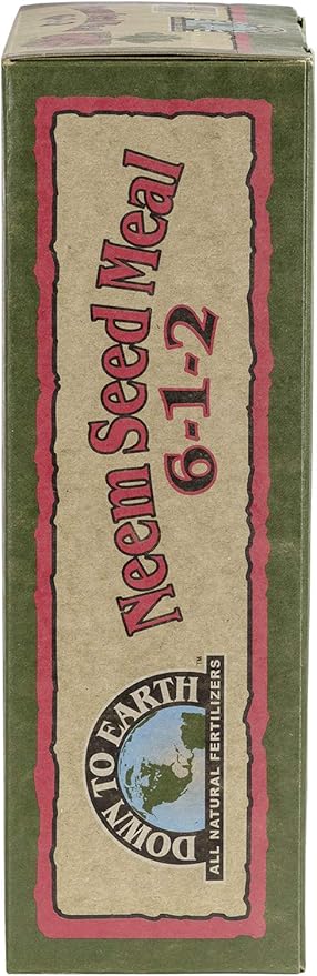 - Down to Earth Neem Seed Meal is a five pound box of all natural fertilizer with 6-1-2 formula and is listed by the Organic Materials Review Institute (OMRI) for use in organic production