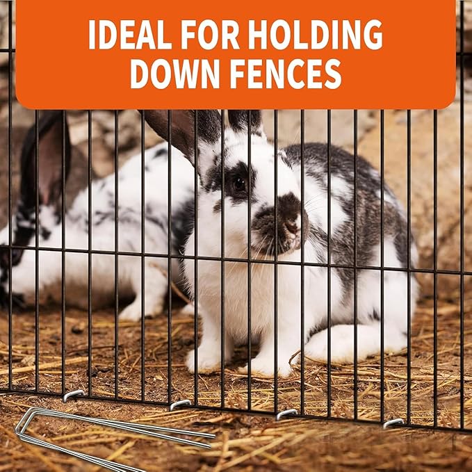 - Longer Lasting - because they’re galvanized, they’ll last much longer without getting rusty, and they’ll keep doing the job they were intended to do. These staples are perfect for holding down sod or landscaping fabric on hills, mounds, and curves, anchoring wire to the ground for plant and animal cages and even fences, for use with garden ornaments or decorations, for installing and securing landscape edging, water and drip soaker hoses, and much more.