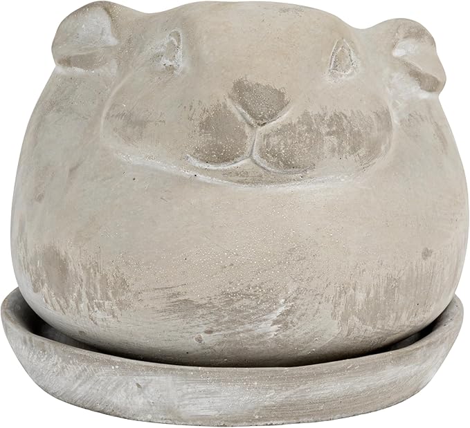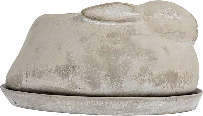 Creative Co-Op Cement Rabbit Planter with Saucer (Set of 2 Pieces)