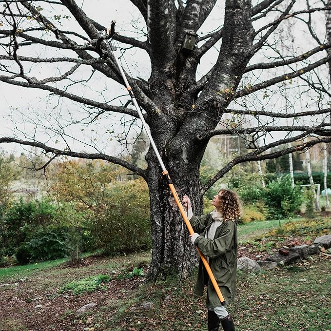 - COMFORTABLE GARDEN TOOLS: Lightweight, yet strong fiberglass pole is oval-shaped to reduce flex, fits the natural shape of your hand, allowing you to control each cut; secure double locking system ensures the extended pole stays put