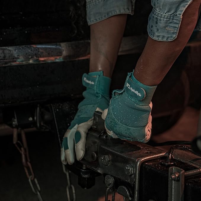 Wells Lamont Women's Hybrid Work/Gardening Gloves | Water-Resistant HydraHyde Leather | Large (3204L), Aqua
