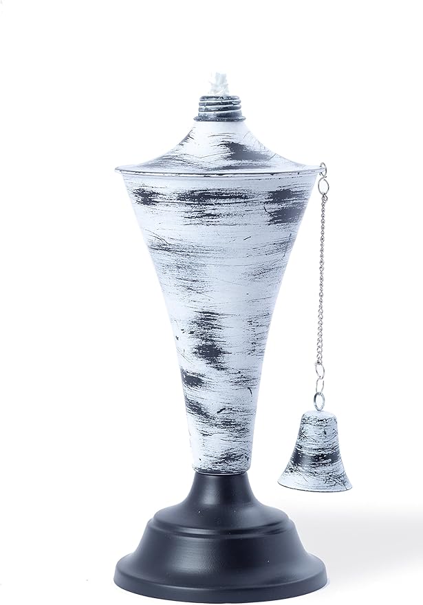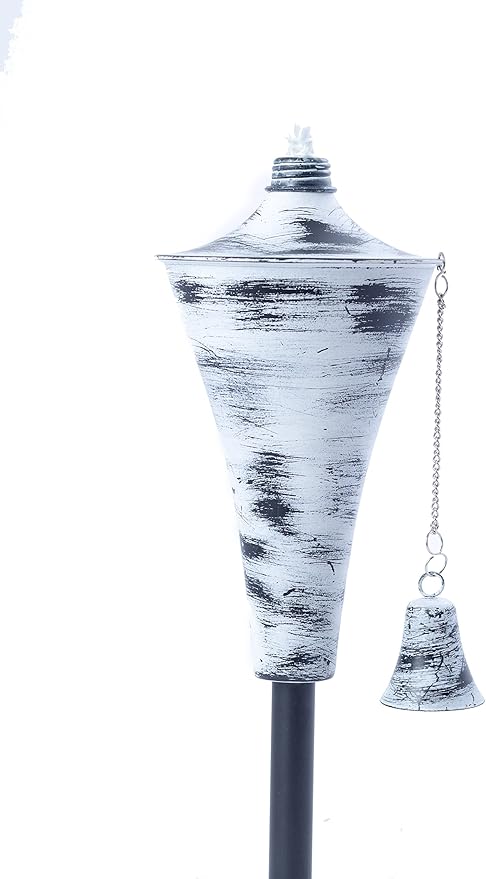 Set of 4, Oahu Premium Metal Outdoor Torches for Patio, Lawn and Garden - Tiki Style Metal Torch/w Snuffer, Fiberglass Wick & Large 16oz Oil Lamp - 53" Tall (Whitewash)