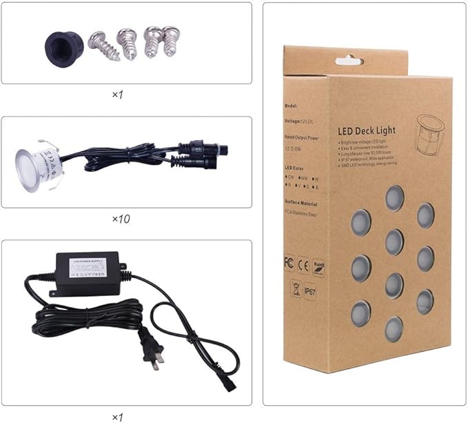- 【Package Includes】10*LED Deck Lights&1*US Power Adapter&4*Screws.