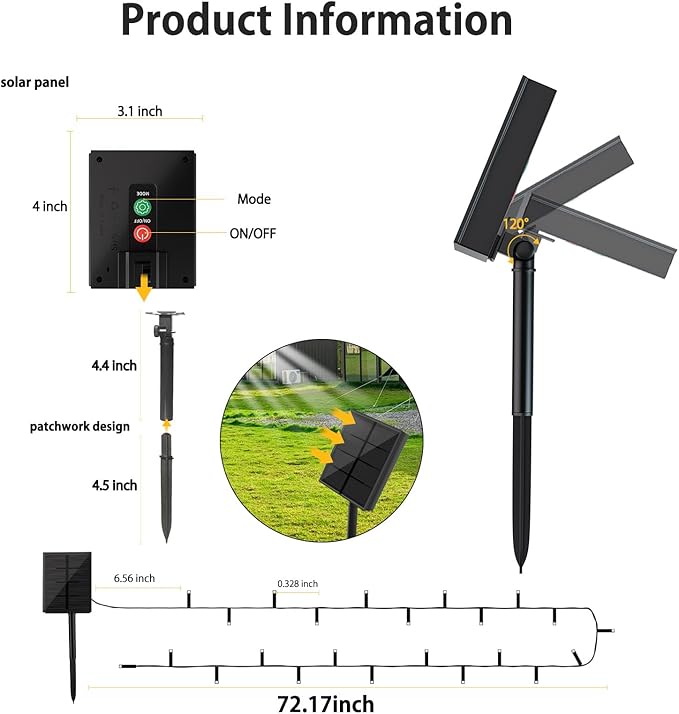 - 🎄 Wide Application Christmas Lights Solar : No extra tool is required, just need simply to stick the solar panel stake into the ground and put the string at any places you want.