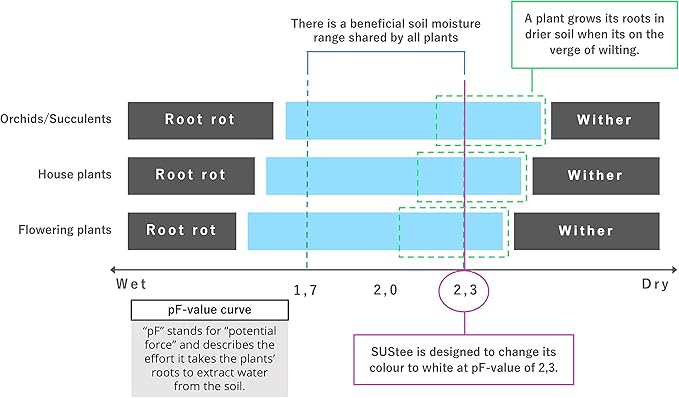- This soil aqua meter has plant water indicator that changes color depending on soil type - White indicates plant needs watering; blue indicates it's been watered