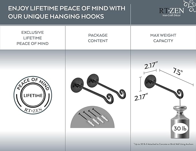 - HEAVY DUTY DURABLE UNIQUE ART PIECE - Double Front Welding Galvanized with Zinc & Powder Coating for Strong Rust Resistant Hook. Cast & Wrought Iron Steel Built to Last. Mounting Screws & Black Hardware Included