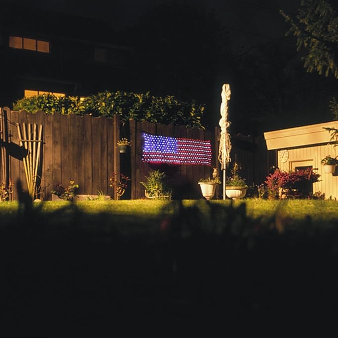 - Cool American Flag Light Effect for All Day Decoration:Display your patriotic spirit with this unique LED flag net lights. Great for Memorial Day, Independence day, 4th of july decorations, Christmas, festival , holiday , party, ceremony, and many other celebration occasions. This American Flag decor designed can be portable,suspended, laid, flexible to use, put on tree, vine, porch roof, bedroom window, balcony, wall, bringing warm and pleasant atmosphere to your home or party.
