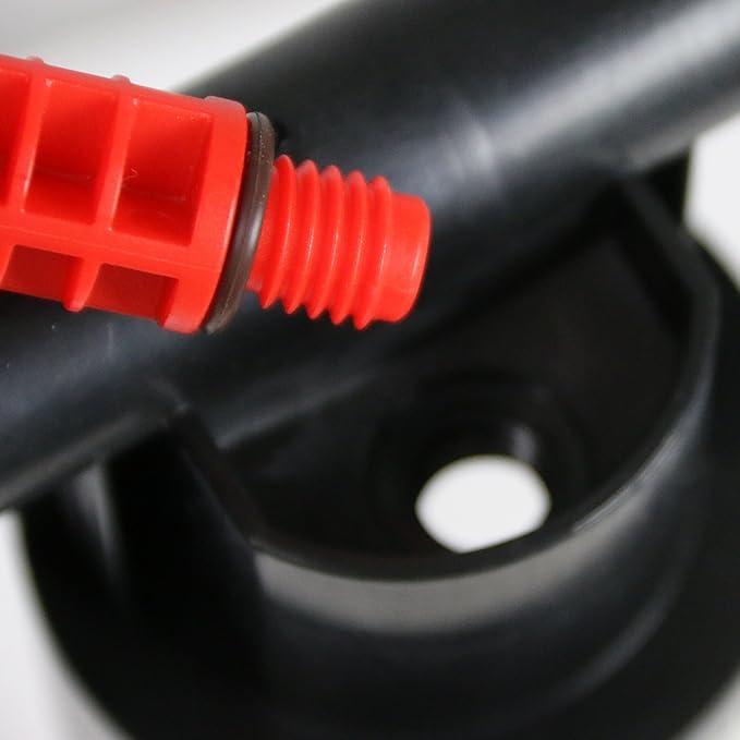 - Rigid inlet tube with filter for debris-free mixing and drain plug with valve to quickly empty the tank after each use