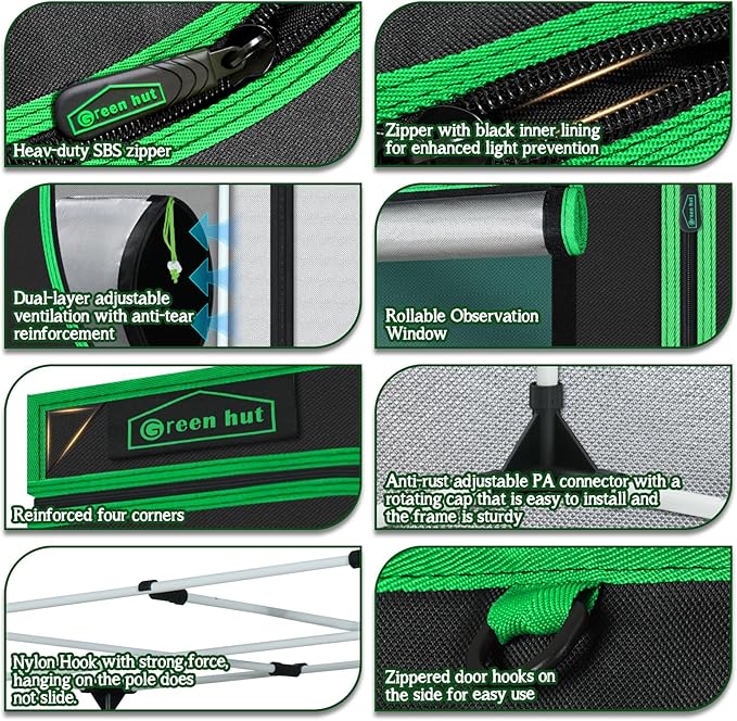 - LIGHT PROOF — The large heavy duty Zippers & 1.5" ribbon protect the tent from light leaking and ensure durability and long-lasting use. Let you control the climate and lighting so you can grow any plant in any place safely and easily