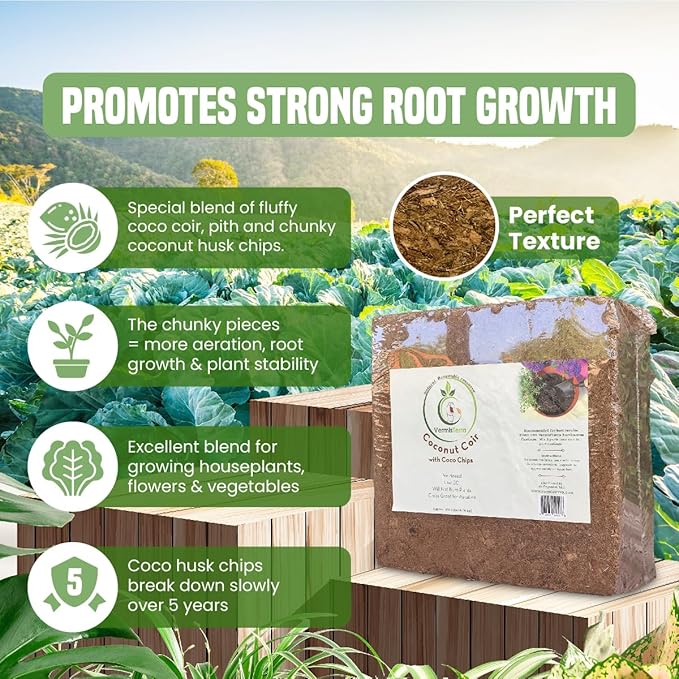 - Chunky, Coconut Husk Chips provide excellent aeration, promoting strong root growth and plant vigor