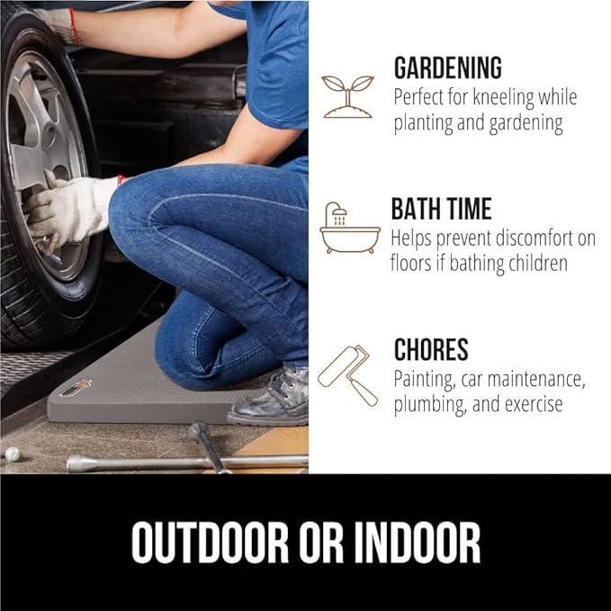 - GARDENING, PAINTING, EXERCISE AND MORE: the versatile design of the pad makes it a great option for multiple tasks and activities; ideal for gardening supplies, yoga and exercise workouts, bathing your baby and kids, sporting events, camping, everyday household chores, plumbing, painting and more; even makes great gifts; pad measures 17.5 by 11 inches
