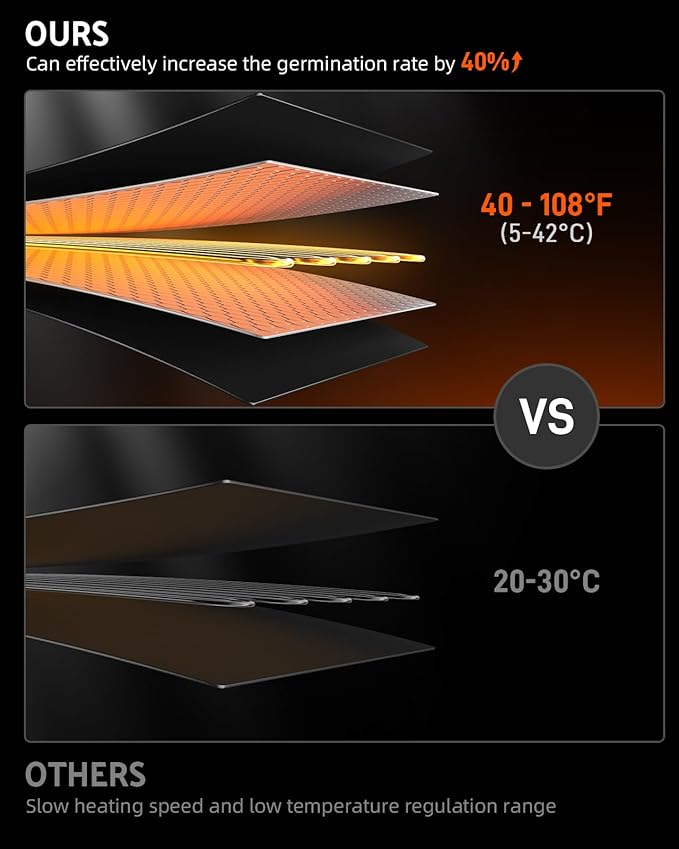 - Reliable results: iPower has a professional heating pad that can keep the temperature at 10 ° F-20 ° F (6 ° C-12 ° C) higher than the surrounding air temperature, making it the best choice for temperature-sprouting seeds.
