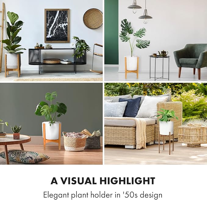 - SUSTAINABLE, ECO-FRIENDLY MATERIALS: This bamboo plant holder is made from natural bamboo, which is strong as steel and offers the warm tones of solid wood. We care deeply about the environment and have chosen bamboo for these standing planters.