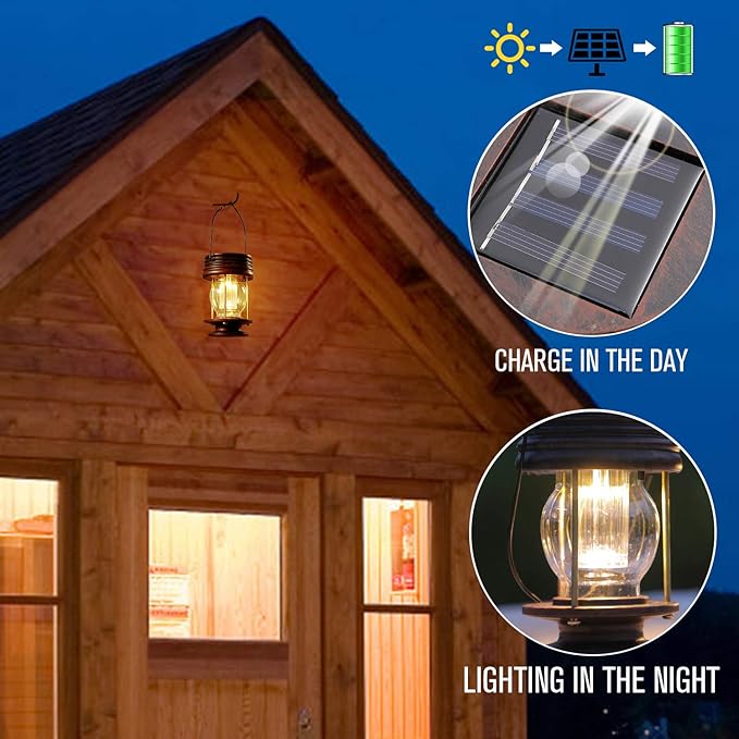 - 【Waterproof Design】-- The solar lanterns are made of high-impact ABS plastic proven to withstand in bad weather.IP44 waterproof grade, no more worries about raining, snowing, perfect for outdoor use.