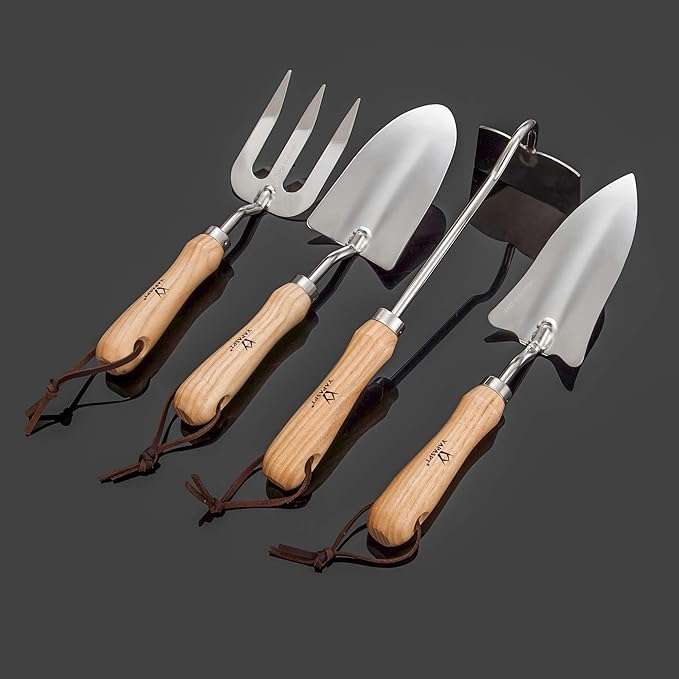 Gardening Tool Sets – Garden Hand Tools Kits with Wood Handle and Stainless Steel Head,Trowel, Hoe, Shear