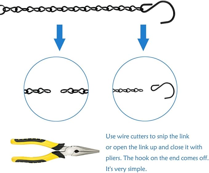 - ✅ADJUSTABLE LENGTH: You can shorten or extend or loop the hanging basket chain according to the clips on it, which help you meet various needs in those feeders which have different heights, chain for hanging plants easy to install and remove