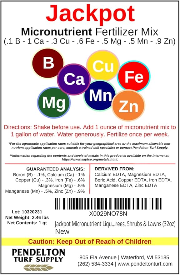 Pendelton Turf Supply Jackpot Micronutrient Liquid Fertilizer Mix | Indoor & Outdoor | for Plants, Flowers, Vegetable Gardens, Trees, Shrubs & Lawns (32oz)