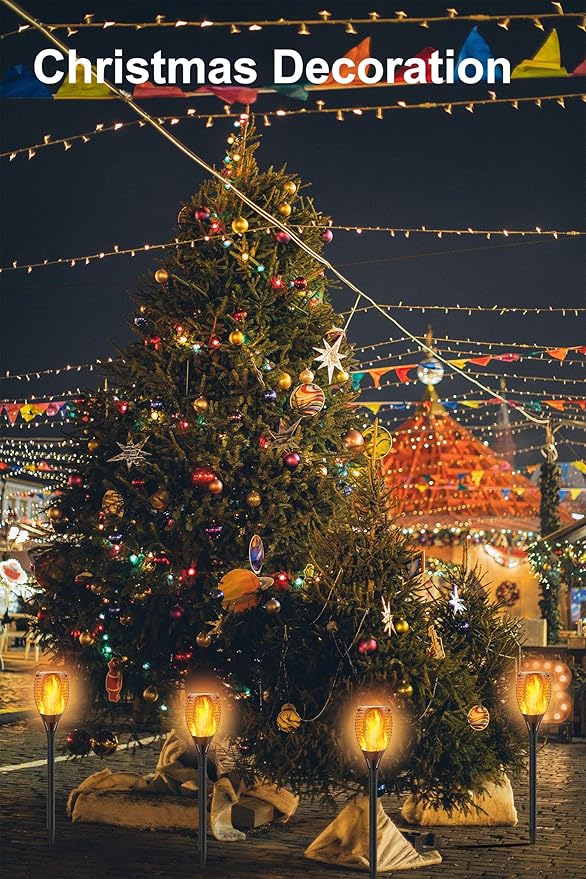 - Broad Application & Easy Installation: Flickering flame solar torch is a prefect choice for Home, Patio, Garden, Yard, Pathway, Walkway, Driveway and also great for garden party, camping, barbecue, wedding, Christmas, Halloween festival decoration. No wiring required, get the torch connected with the stake and spike, simply install the torch solar lights anywhere you like and enjoy the real and safe "Flames"!