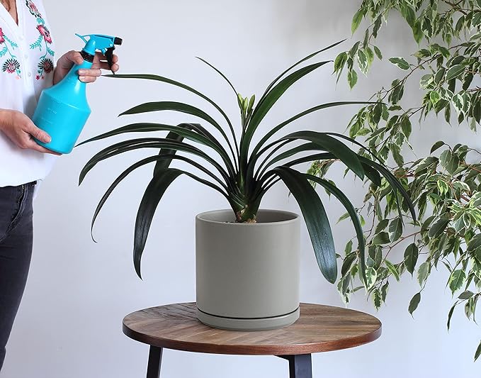 D'vine Dev 8 Inch Ceramic Planter Pot with Drainage Hole and Saucer, Indoor Cylinder Round Planter Pot, Grey, 94-O-D-3