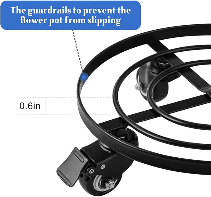 AMAGABELI GARDEN & HOME 12" Metal Plant Caddy Heavy Duty Plant Stand with Wheels Wrought Iron Potted Brake Flower Pot Rack Rollers Mover Dolly Holder Indoor Outdoor Planter Trolley Caster BG1622