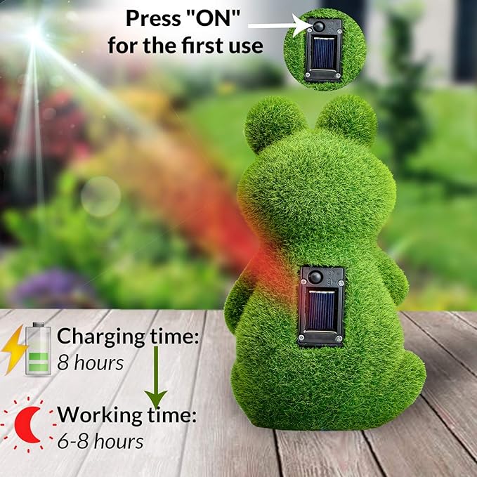 - Enjoy the whimsical charm of our solar frog statue, a delightful addition to your patio, balcony, yard, or lawn. These solar powered animals with eyes that light up create a serene ambiance.
