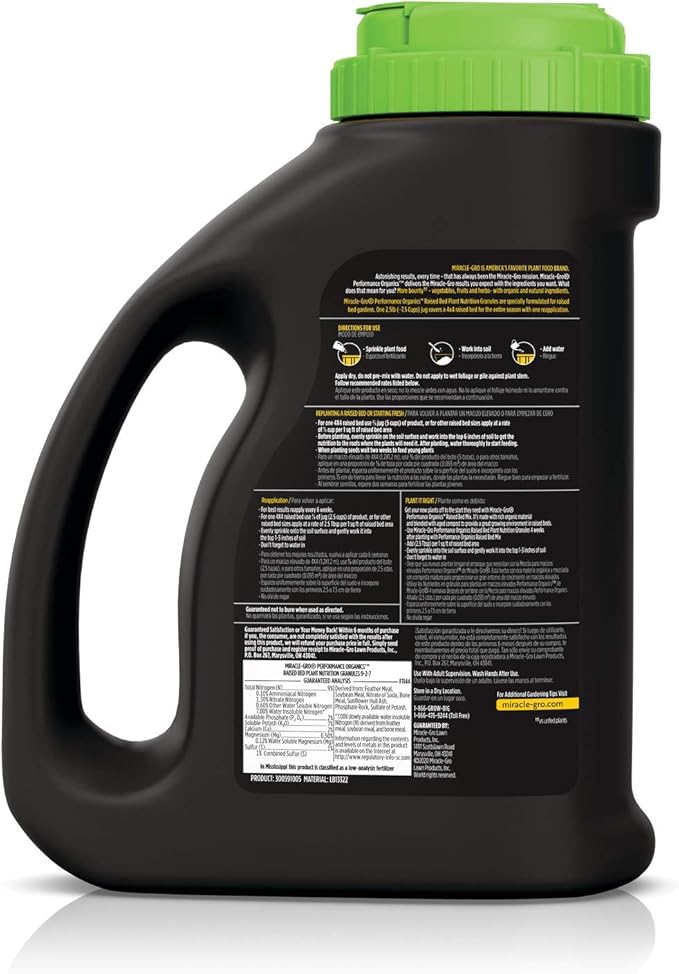 Miracle-Gro Performance Organics Raised Bed Plant Nutrition Granules - Plant Food with Natural & Organic Ingredients, for Vegetables, Fruits, Herbs and Flowers in Raised Beds, 2.5 lbs.
