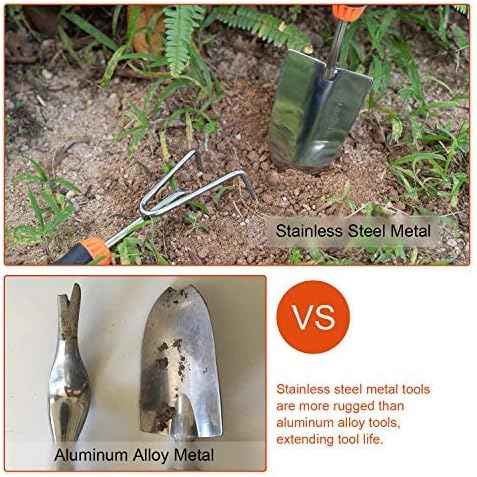 - 【Sturdy Stainless Steel】Our heavy-duty gardening kit for men is constructed of stainless steel, which inhibits rust and guarantees durability. It is lightweight, so you can use it flexibly for gardening work, and your hands are not easily fatigued.The non-slip, soft rubber grip handle makes them a pleasure to use. Additionally, gardening comfort is greatly enhanced by the ergonomic design.