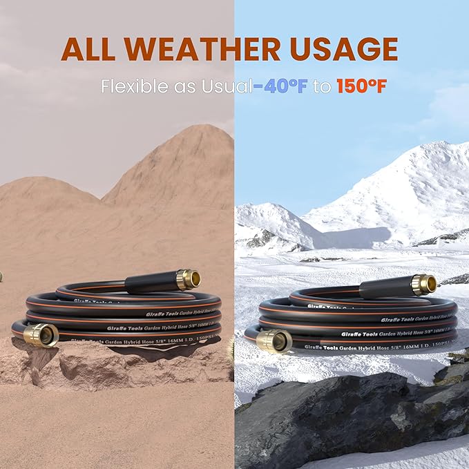 - All-weather Flexible - Working water pressure is 150PSI, use under residential water pressure. The rubber component allows the hose to remain flexible in extreme temperatures, defying heat or cold, still easy to coil and uncoil.
