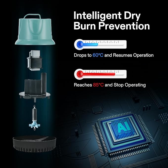 - Anti-Drying Design: When the temperature reaches to 185 ℉(85℃), the built-in thermal protector chip will stop the pump from draining and pumping water; Pure copper wiring delivers more stable power for a longer service life and more energy savings