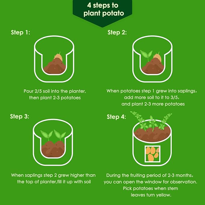 Delxo 10Pack 10 Gallon Potato Grow Bags,Grow Bags for Vegetable with Window, Double Layer Premium Breathable Nonwoven Cloth for Potato/Plant Container/Aeration Fabric Pots with Handles in Green