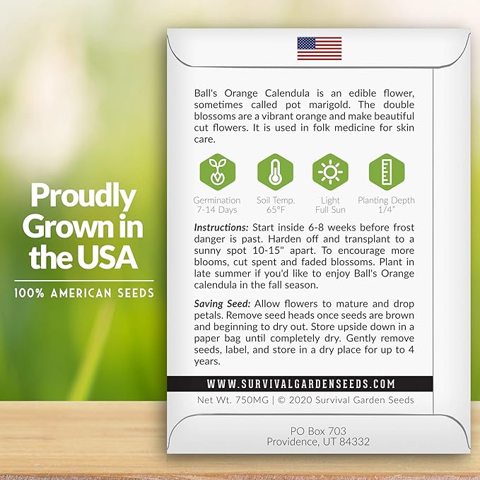 Survival Garden Seeds Ball's Orange Calendula Seed for Planting – 1 Packet with Instructions for Growing Medicinal Herbs in Your Home Vegetable Garden – Non-GMO Heirloom Variety Herb Seed
