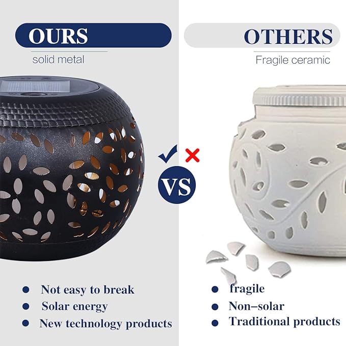 - WEATHER RESISTANCE: Adopt IP44 Waterproof and Durable PP Plastic, iron. This dancing flame lamp was built to withstand all kinds of weather all round year.