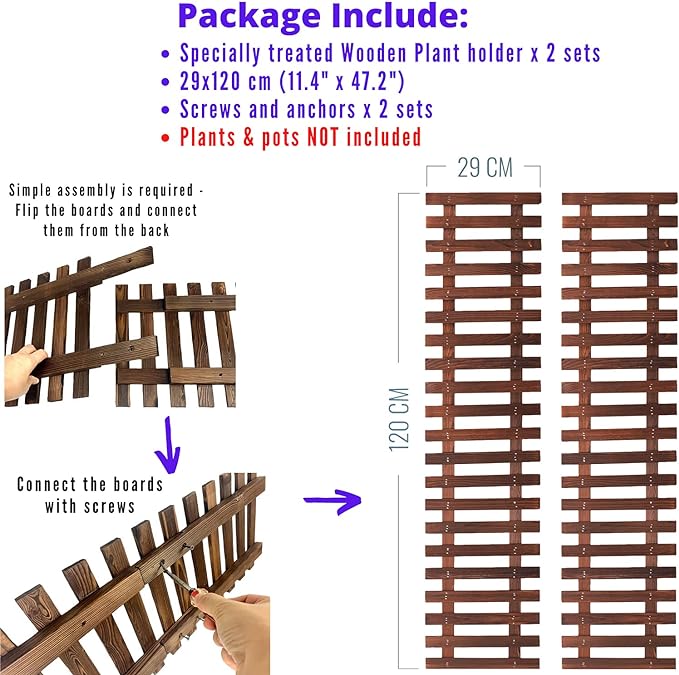 - 29x120cm (11.4" x 47.2") x 2 pcs. Plants, flowers, pots, decorations are NOT included