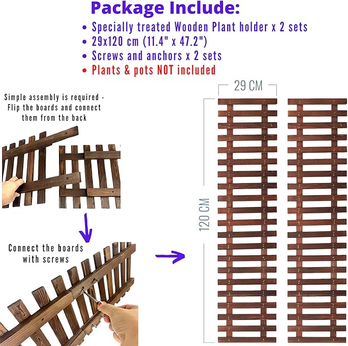 - 29x120cm (11.4" x 47.2") x 2 pcs. Plants, flowers, pots, decorations are NOT included