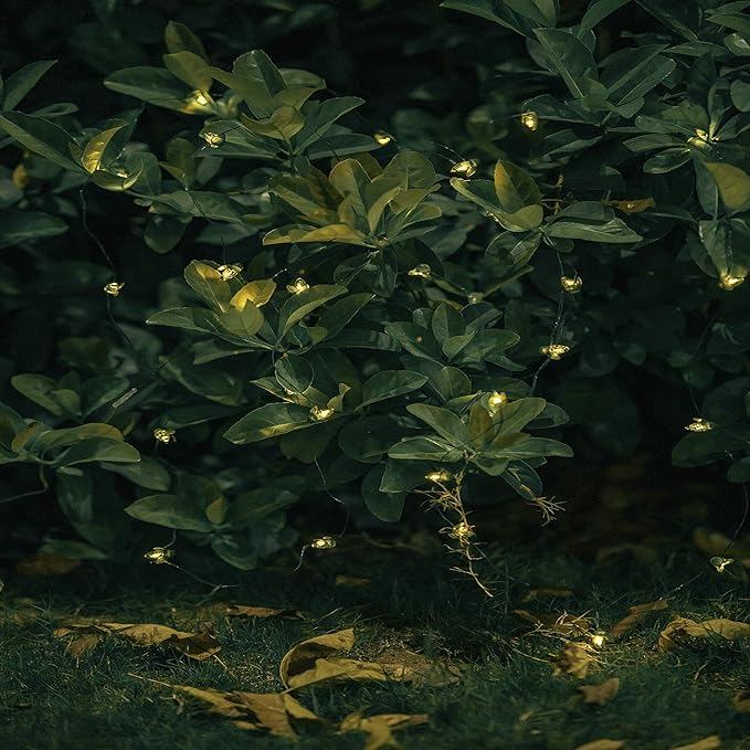 - 【Attractive Firefly Shape Design】Vivid and realistic Firefly solar powered led flickering string lights with 30 LEDs.Great in trees, fences, garden or pool areas, beautiful spring outdoor christmas decoration. Transform your yard into an enchanted evening in nature with these Flickering Fireflies.