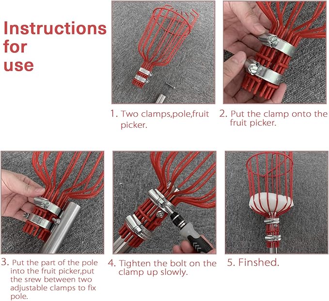 - 🍋It arrives in two parts: the extension pole and the twist-on head. All you need to do is use a screwdriver to tighten the thread tip clockwise, and then the fruit grabber can be used.