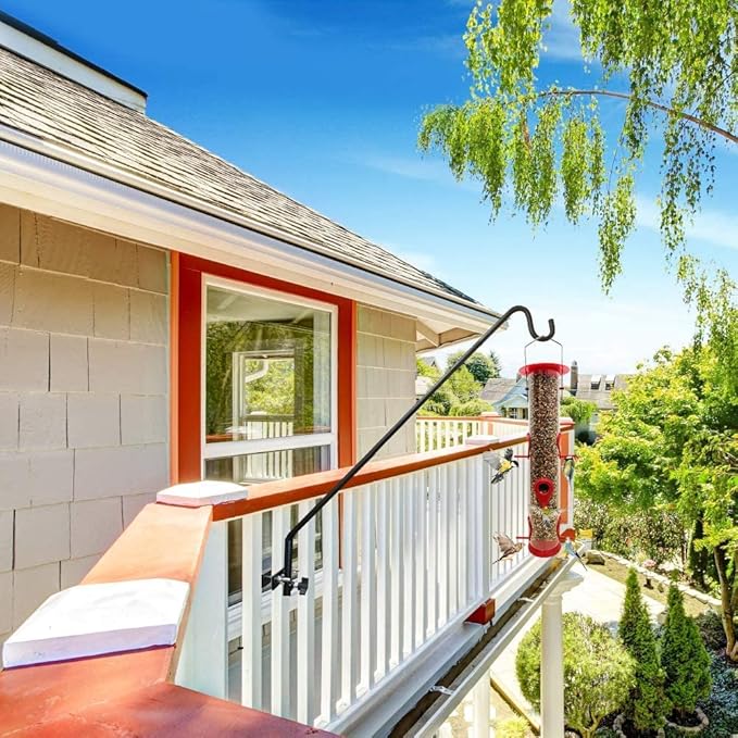 - Easy to Install: You install deck hook for bird feeder to the wall, deck, fence, and post with the screws provided. Manual rotation of plant hangers outdoor allows you to easily adjust the height and angle of the plant hanger hook without much time. Adjustable clamp fits on horizontal railing up to 2.5 inch thick.